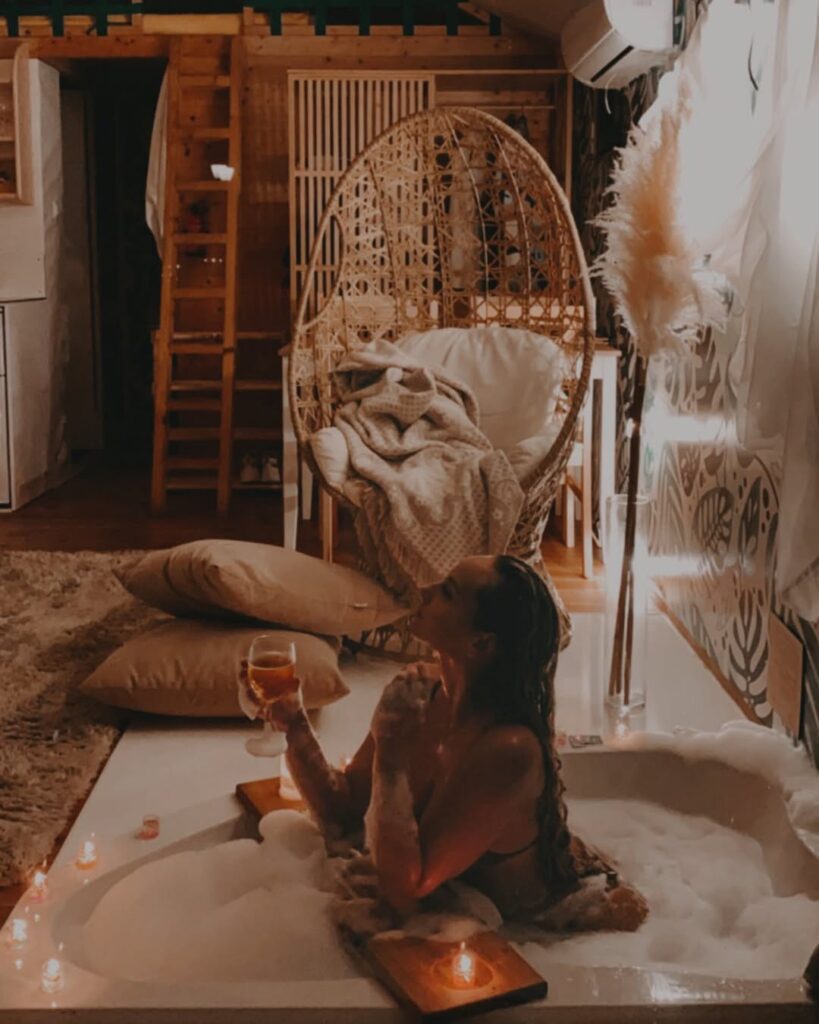 Jednym z największych atutów nowoczesnych glampingów jest jacuzzi na wyłączność. Kąpiel w ciepłej wodzie, często z wanną z hydromasażem, w otoczeniu ciszy i zieleni to zupełnie inny poziom wypoczynku. Taki relaks jest idealny do wieczornego relaksu, szczególnie po dniu spędzonym na plaży lub aktywnie na świeżym powietrzu.